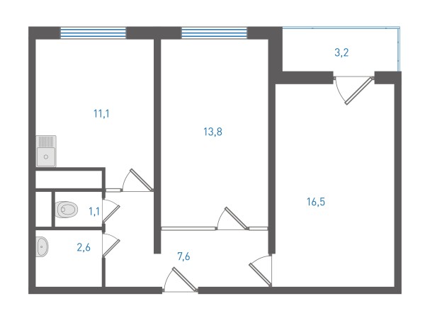 54.3 м²