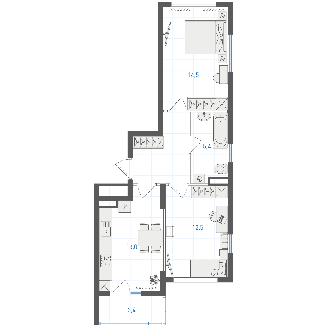 44.7 м²