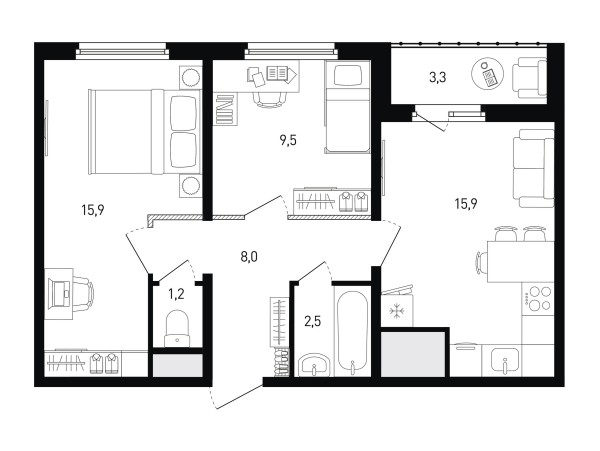 54.7 м²
